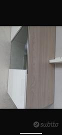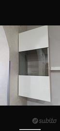 o Pensile con vetrina in vetro e anta bianca lucida, perfetto per esporre bicchieri, libri o oggetti decorativi.