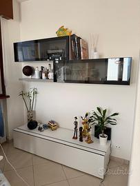 Vendo mobile da soggiorno moderno con pensili sospesi e ante in vetro fumé, più base contenitore. Elegante, pratico e capiente, ideale per soggiorno o sala da pranzo. Colore bianco, design contemporaneo. In ottime condizioni. Ritiro a carico dell’acquirente.