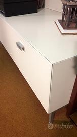 mobile soggiorno in LEGNO ciliegio e LACCATO bianco con anta scorrevole in alluminio, pensile a ribalta con anta a scomparsa, base con spigoli a 45 gradi.NUOVO da esposizione. valore di listino euro 7000 euro. in vendita a 1900