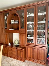 Il mobile è dotato di vetrinette, vani chiusi e diversi spazi pratici per riporre libri, oggetti decorativi, stoviglie o dispositivi multimediali. La struttura è robusta e realizzata con materiali di qualità, ideale per chi apprezza un design più tradizionale e accogliente.
