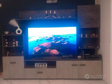 Vendo mobile soggiorno moderno colore grigio effetto cemento con dettagli scuri. Composto da base porta TV con cassetti, pensili laterali e mensola causa trasloco si trova a Gradara ( Pesaro Urbino)