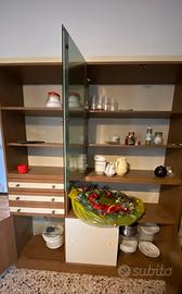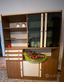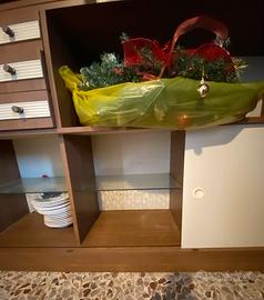 Regalo mobile da soggiorno marrone con bordi bianchi, il lato più lungo misura h 2 mt, larghezza 1,60 mt profondità 40 cm, quelli più stretto e' largo 80 cm