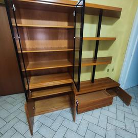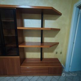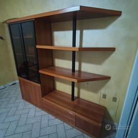 Vendo mobile soggiorno / parete attrezzata. Struttura in legno con vetrina chiusa e ripiani a vista. Colore legno con profili neri. Solido e in perfette condizioni, nessun graffio o usura del tempo. Misure: larghezza 218 cm profondità 43,5 cm Adatto per soggiorno, studio o ingresso. Ritiro a carico dell’acquirente.