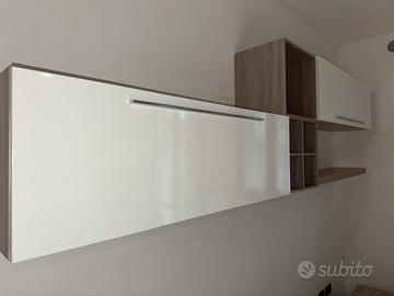 - due mobili contenitori con mensola laccata bianca misure 120x33x40h