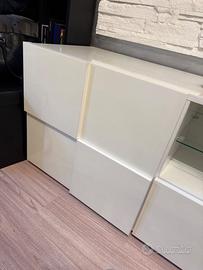Mobile per soggiorno / porta tv bianco lucido con mensola centrale in vetro Linea Drama Mondo Convenienza 180x57 profondità 43cm