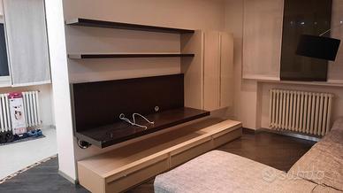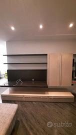 Vendo mobile soggiorno porta tv, composto da tre cassetti, mensola grande porta tv, due mensole piccole e armadio due ante con ripiani.