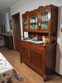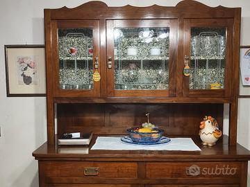 Bellissimo mobile da soggiorno restaurato. Con vetrina e ante nella parte inferiore.