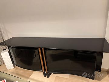 Mobile laccato nero soggiorno con doppia apertua . Da un lato due ripiani , l’altro solo uno . Lunghezza 2.40 m Larghezza 55 cm altezza 83. Qualche graffio