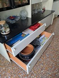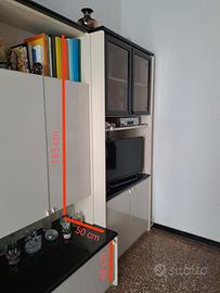 Mobile soggiorno costituito da comparto vetrinetta, comparto dispensa e zona TV, oltre a tre capienti cassetti.