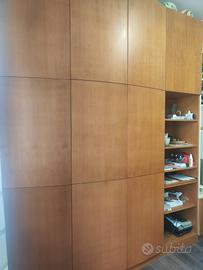 mobile da soggiorno/ studio / camera fatto a mano su misura da artigiano falegname in legno Tanganica con disegno curvo 260 lunghezza x 270 altezza x spessore max 53 Apertura ante push pull, interno a ripiani