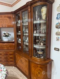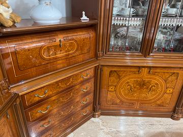 Elegante mobile per soggiorno in legno noce con vetrine e angolo tv/acquario.