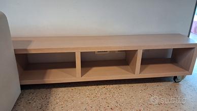 Mobile soggiorno in rovere sbiancato su ruote dim. 300 x 30 cm altezza 41 cm. Ritiro a cura dell'acquirente