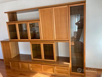 Mobile soggiorno con vani chiusi, vetrina e non - legno di ciliegio - lunghezza totale metri 3,15 Ritiro del mobile in loco previo accordo