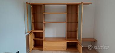 Mobile soggiorno come nuovo in legno massiccio con antine in vetro satinato e antina bassa in aggiunta