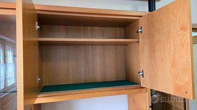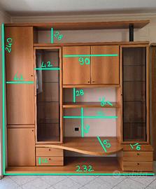 Composto da ripiani e vani capienti, 2 vetrine e 4 cassetti, ideale come parete attrezzata o divisorio tra due ambienti.