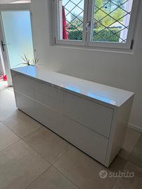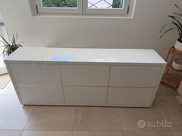 A seguito rinnovo arredamento vendo mobile da soggiorno laccato bianco 4 cassetti e 2 ante, lunghezza cm 190 altezza cm 76 profondità 40 cm. Mobile in ottime condizioni d'uso.
