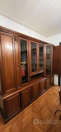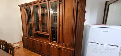 Vendo vetrina da soggiorno in ottimo stato, solida e molto raffinata. Le misure sono le seguenti : 220 di altezza, 50 cm di larghezza nella parte bassa, 40 sulla parte sovrapposta, per una lunghezza di 270 cm complessivi. 6 ante verticali, per tre spazi ampi in cui riporre ceramiche, bicchieri, linge de maison. Su domanda vi posso mandare altre foto.