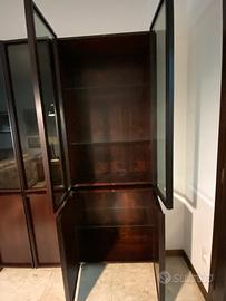 mobile soggiorno in palissandro con vetrine e ripiani in cristallo, mobile bar