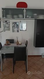 Vendo mobile nero sospeso con vetrinetta con vetro satinato,tavolo quadrato in vetro con 4sedie nere tutto in ottimo stato