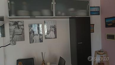 Mobile sospeso nero con vetrinetta +tavolo in vetr