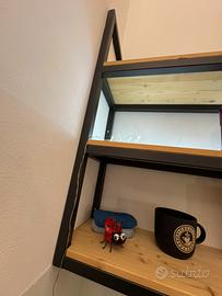 Mobile scaffale sospeso lunghezza 240 cm per altezza 1 metro In acciaio e legno ripiani