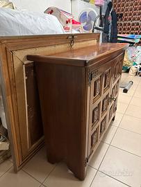 Mobile in stile spagnolo vintage a due ante con decorazioni incise.