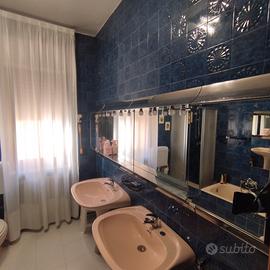 Mobile a specchio componibile, con ante laterali tutto in acciaio, con faretti, stile anni 70, per bagno grande a doppio lavabo. Ritiro a mano.