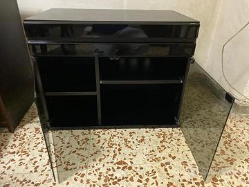 Mobile stereo in legno laccato nero, marca Ciatti. Doppia anta in vetro e cassetto. Ritiro zona quartiere Africano. Prezzo 30 euro.