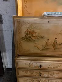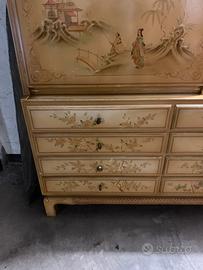trumeau, armadio in stile Chinoiserie, caratterizzato da laccatura e decorazioni dipinte a mano con paesaggi orientali.