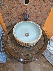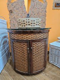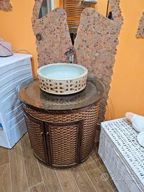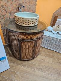 Vendo mobile da bagno in vimini struttura a botte effetto legno completo di tutto come nuovo vendo per cambio stile misure più o meno diametro da 80