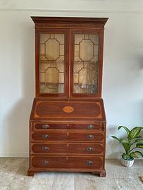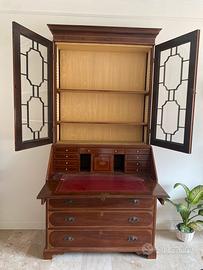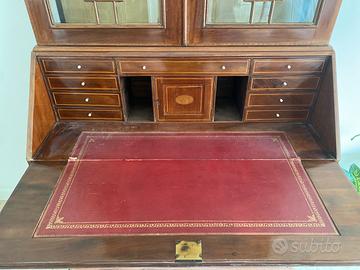 Perfettamente funzionante: cassetti, vetrina, scrittoio, cassetti interni. La pelle dello scrittoio e’ usurata nelle cerniere come da foto.
