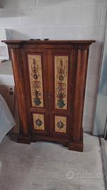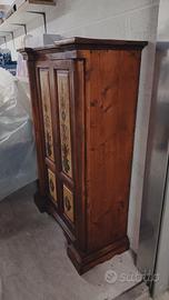 Mobile Stile Tirolese , completamente restaurato da pochi giorni, molto bello e di pregio , funzionale e versatile sia come guardaroba o come mobile con mensole, dimensioni alto143cm, lungo100cm, largo 42cm, profondità mobile 27cm.