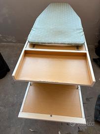 * Mobile stiro Foppapedretti con piano a scomparsa. Completo di copertina stiro in cotone e polvere di alluminio. Smaltato bianco lucido, con ruotine per facilitare spostamenti.