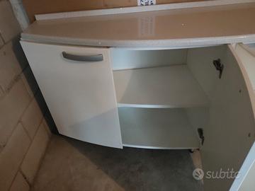 mobile stondato in legno con base in marmo okite più mensola colore noce misura 200 cm profondità 50 cm e disponibile subito