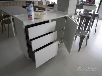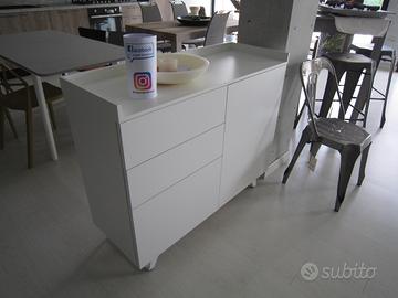 MOBILE PER INGRESSO CON VASCHETTA "SVUOTA TASCHE" SUPERIORE, ANTE E CASSETI IN LACCATO OPACO BIANCO GESSO