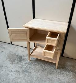 Grazioso e versatile mobile tavolino/consolle, con anta, due cassetti, e ripiano, realizzato artigianalmente in legno massello.