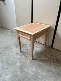 Pratico tavolino con cassetto (interamente in legno massello con incastri a coda di rondine), realizzato artigianalmente in legno. Perfetto come tavolino da posizionare accanto al divano come pratico servitore o semplicemente come porta-lampada o porta-vasi. Il tavolino è al grezzo, quindi ideale per essere rifinito con tecniche di finitura manuale come lucidature a mano, laccature artistiche, finiture tipo Shabby Chic, o qualunque altra finitura. Possibilità di averlo anche finito e verniciato, pronto uso. Dimensioni: 50x70 H61 cm. Per info, altre foto, o per visionarlo: 340 7088525 (Davide).