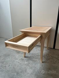Pratico tavolino con cassetto (interamente in legno massello con incastri a coda di rondine), realizzato artigianalmente in legno.