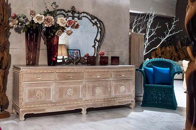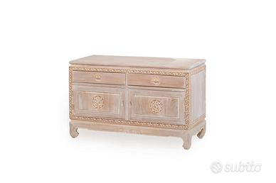 Mobile teak sbiancato intagliato tutto in massello di teak indonesiano. 120 x 50 h 70 2 ante 2 cassetti listino 940,00 ?