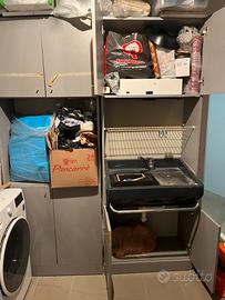 Cedo al migliore offerente : 2 armadi per negozio da parrucchiere (Retrolavaggio professionale). Dimensioni 220x30x80 (entrambi) Uno dei due ha anche un lavello ed una cappa integrata (per la preparazione delle tinte). Trasporto a carico dell’acquirente.