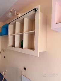 Mobile libreria di legno color panna effetto shabby