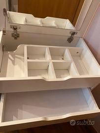 TUTTO IN ORDINE: Il piano d'appoggio del tavolo toeletta nasconde un pratico vano in cui puoi riporre in modo organizzato i tuoi trucchi e tutti i prodotti di bellezza.