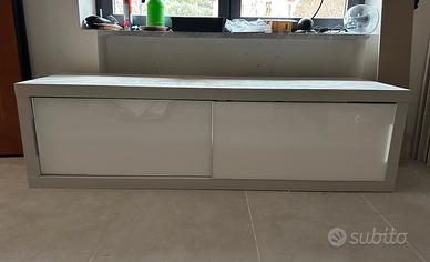 Mobile da soggiorno da tv TOMASELLA in perfette condizioni, color grigio chiaro, con doppia apertura. Presenta solo una piccola ammaccatura sulla parte superiore (quella nell'ultima foto).