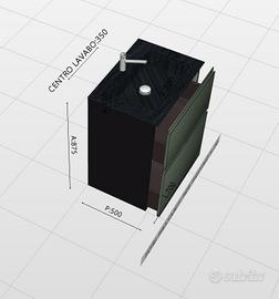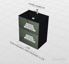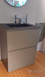 MOBILE BAGNO L70 P50 H90 (misure nominali) laccato bicolor con top in gres Laminam nero opaco con vasca integrata e foro mix su piano.