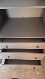 Mobile con tre cassetti, è stato fatto un buco per far passare i fili della tv