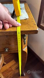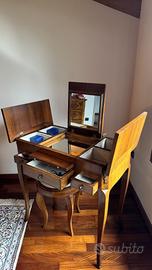 Vendo elegante toeletta in legno massello, con piano apribile, specchio interno e scomparti foderati ideali per gioielli, cosmetici o piccoli oggetti.