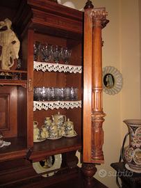 Mobile per il soggiorno con tavolo rettangolare e 6 sedie massicce molto robuste, sportelli di legno massiccio da 3 cm., tutto intagliato a mano, con servitore sopra i cassette per appoggiare pentole o altri accessori che possono rovinare il piano nobile.