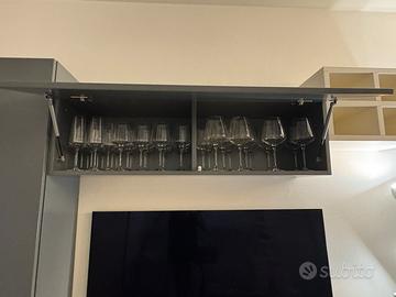 - pensile grigio orizzontale con apertura a ribaltina largo 120 cm, profondo 35 cm, alto 35 cm.