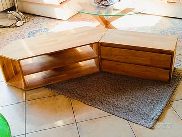 mobile tv in VERO LEGNO ad angolo, composto da due pezzi di cui uno con due cassetti in ottime condizioni. Può essere utilizzato come mobile tv o altro, il tutto in legno vero.