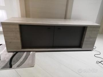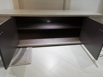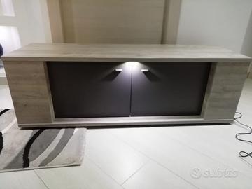 Base tv piccola con luci di colore grigio e ante di colore antracite...misure L 137 cm H 45 P 43! intatta, come nuova, ben conservata